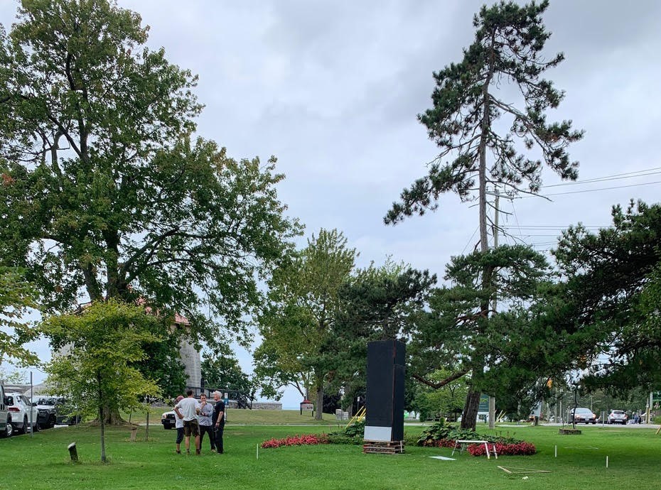 14 August 2023 – NWORA Memorial Sod-Turning Ceremony – Before the Dig! From left to right: Conny Glenn (District Councillor – Sydenham, City of Kingston); Bryan Paterson (Mayor, City of Kingston); Gary Coulter (Chair, National Wall of Remembrance Association); Mark Gerretsen (Member of Parliament, Kingston and the Islands); and Ted Hsu (Member of Provincial Parliament, Kingston and the Islands).