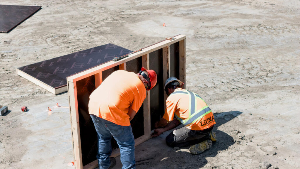 The NWORA Executive prepare the Site board just prior to the Sod-Turning Ceremony.