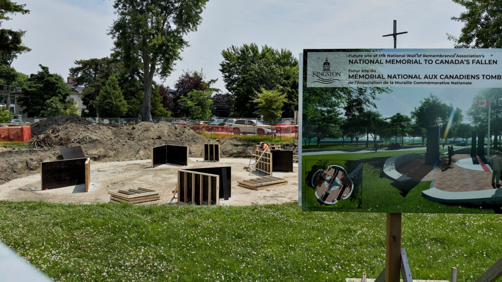 The board states: “Future site of the National Wall of Remembrance Association’s NATIONAL MEMORIAL TO CANADA’S FALLEN. Donations are welcome, please go to www.worassociation.ca for more details.”