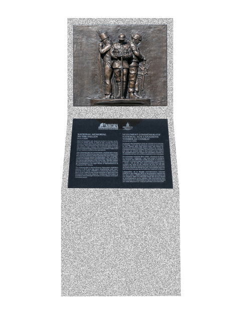 This memorial has two components: physical and virtual. The ‘physical’ Memorial you see here depicts images from the various conflicts in which Canada has been engaged, including the time before Confederation. The ‘virtual’ Memorial is a website (www.canadianfallen.ca) that contains the names and stories of the more than 120,000 military personnel killed in the line of duty, in both war and peace, as immortalized in the eight Books of Remembrance at Parliament Hill, Ottawa.